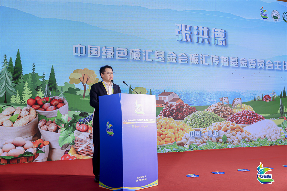 中國綠色碳匯基金會碳匯傳播基金委員會主任張洪德作《中國特產(chǎn)之鄉(xiāng)的品牌建設》報告。