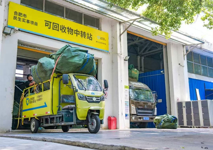 在中轉(zhuǎn)站,公司對可回收物進(jìn)行集中整理后,轉(zhuǎn)運至末端分揀中心。