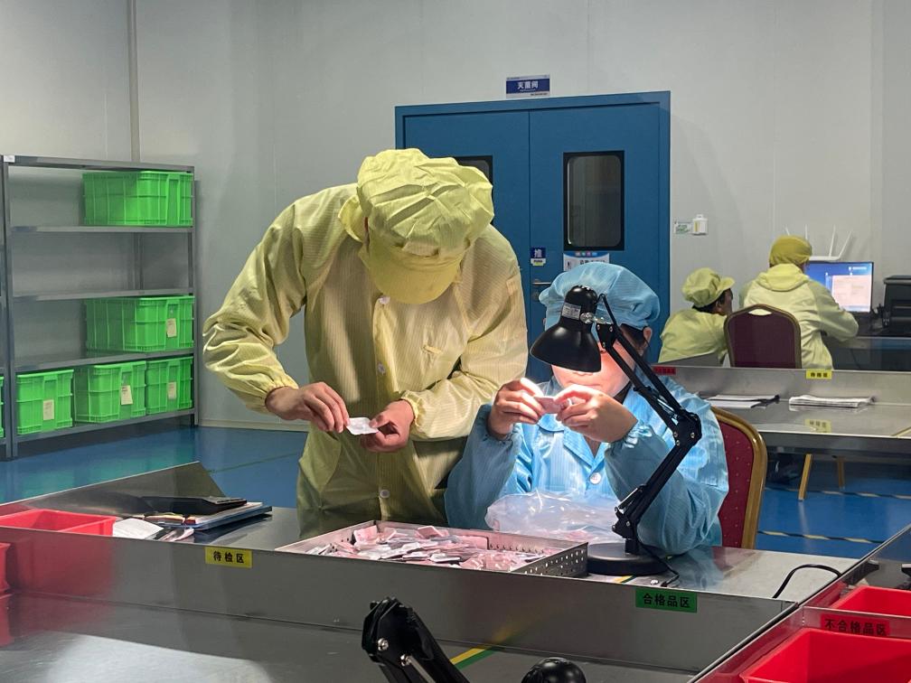 工作人員正在檢查生產(chǎn)出的美瞳產(chǎn)品。新華社記者 程楠 攝