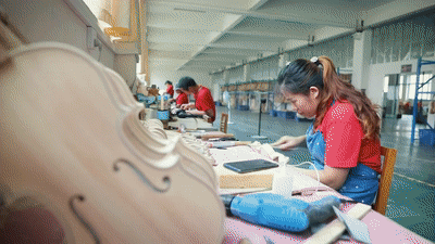 2015年以來(lái),確山縣“筑巢引鳳”,發(fā)展制琴產(chǎn)業(yè)。王金堂等60余名制琴師陸續(xù)返鄉(xiāng)創(chuàng)業(yè)。如今,全縣共有提琴生產(chǎn)企業(yè)144家,形成從木材處理、配件雕刻到油漆噴涂的完整產(chǎn)業(yè)鏈,年產(chǎn)值突破6億元,出口創(chuàng)匯超千萬(wàn)美元,帶動(dòng)了2600余人在家門(mén)口就業(yè)。