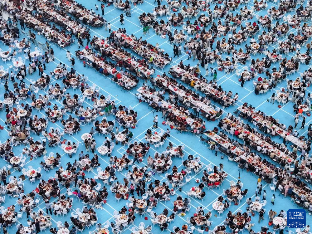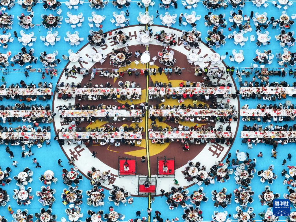 這是第25屆盱眙龍蝦節(jié)歡樂龍蝦宴現(xiàn)場(6月12日攝,無人機(jī)照片)。