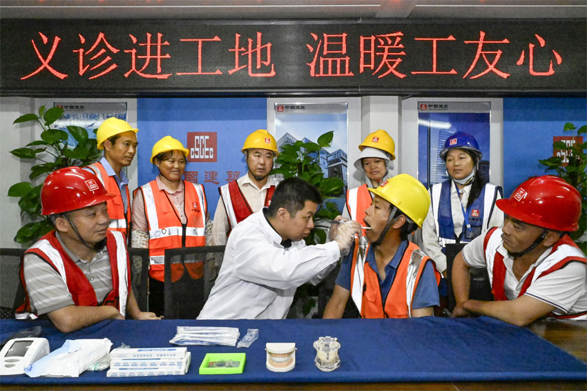 佳德口腔醫(yī)院則設(shè)立口腔健康咨詢(xún)臺(tái),為工友們檢查牙周健康、齲齒情況,并發(fā)放便攜式牙線等實(shí)用物資。醫(yī)護(hù)人員結(jié)合建筑工人飲食特點(diǎn),科普刷牙技巧與口腔保健知識(shí),提醒大家關(guān)注牙齦出血等早期癥狀?!皼](méi)想到工地還能做專(zhuān)業(yè)口腔檢查,以后要更注意口腔衛(wèi)生了?!蓖吖だ畲蠼阍跈z查后認(rèn)真記錄下護(hù)牙要點(diǎn)。