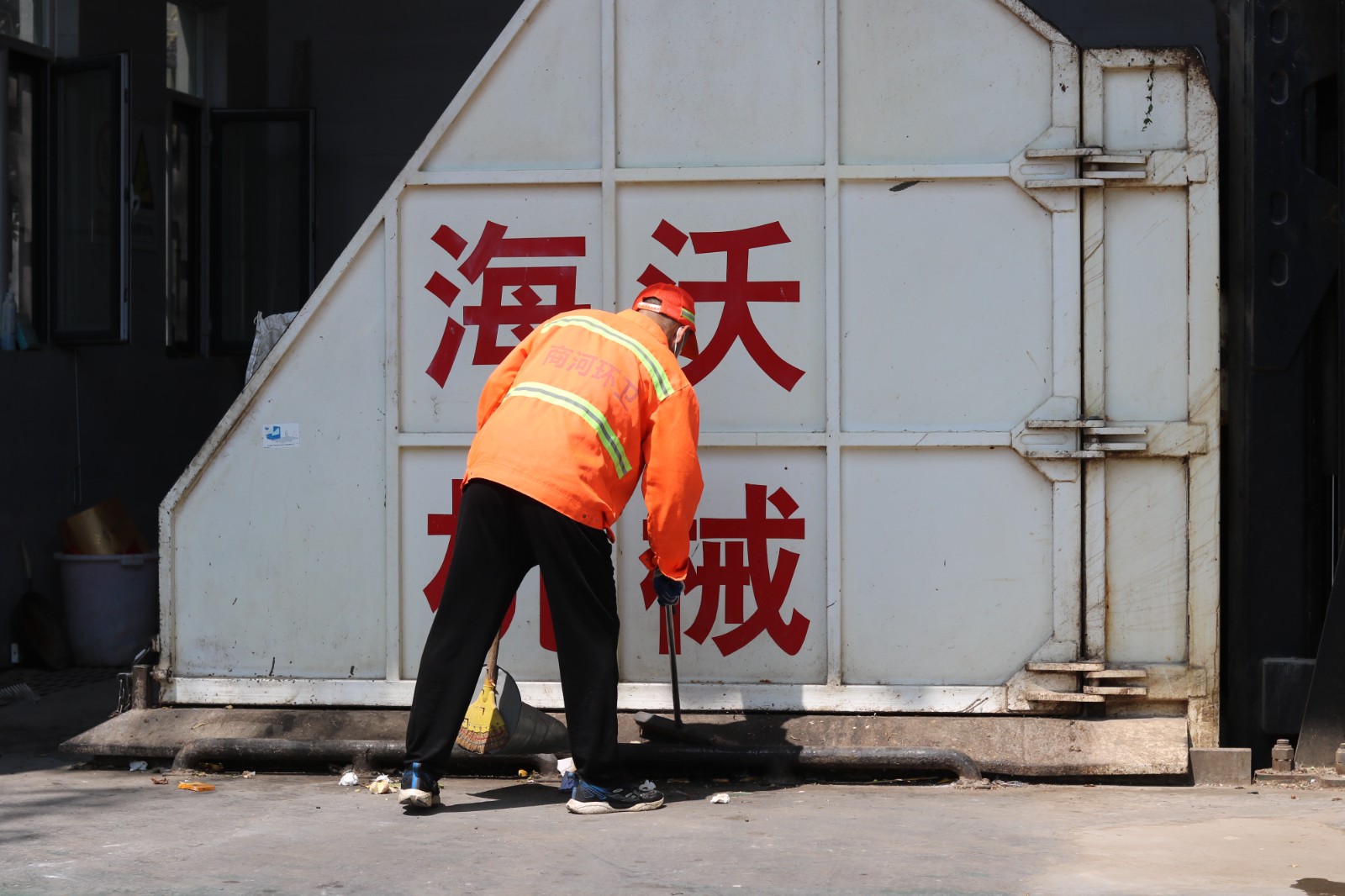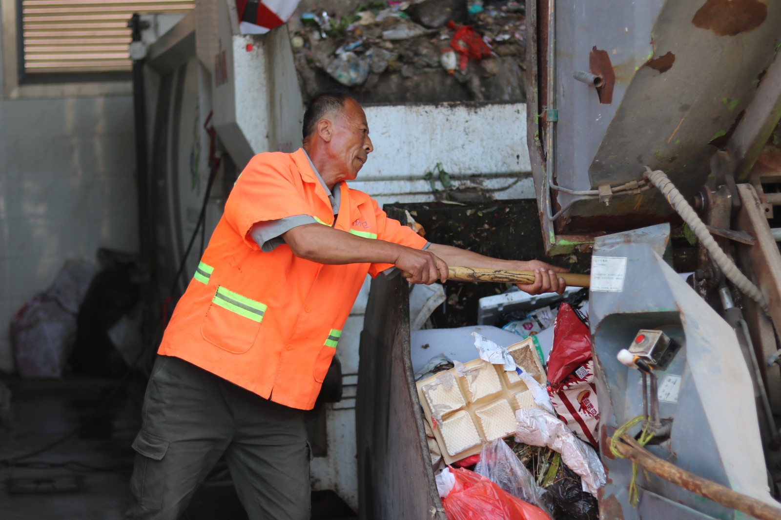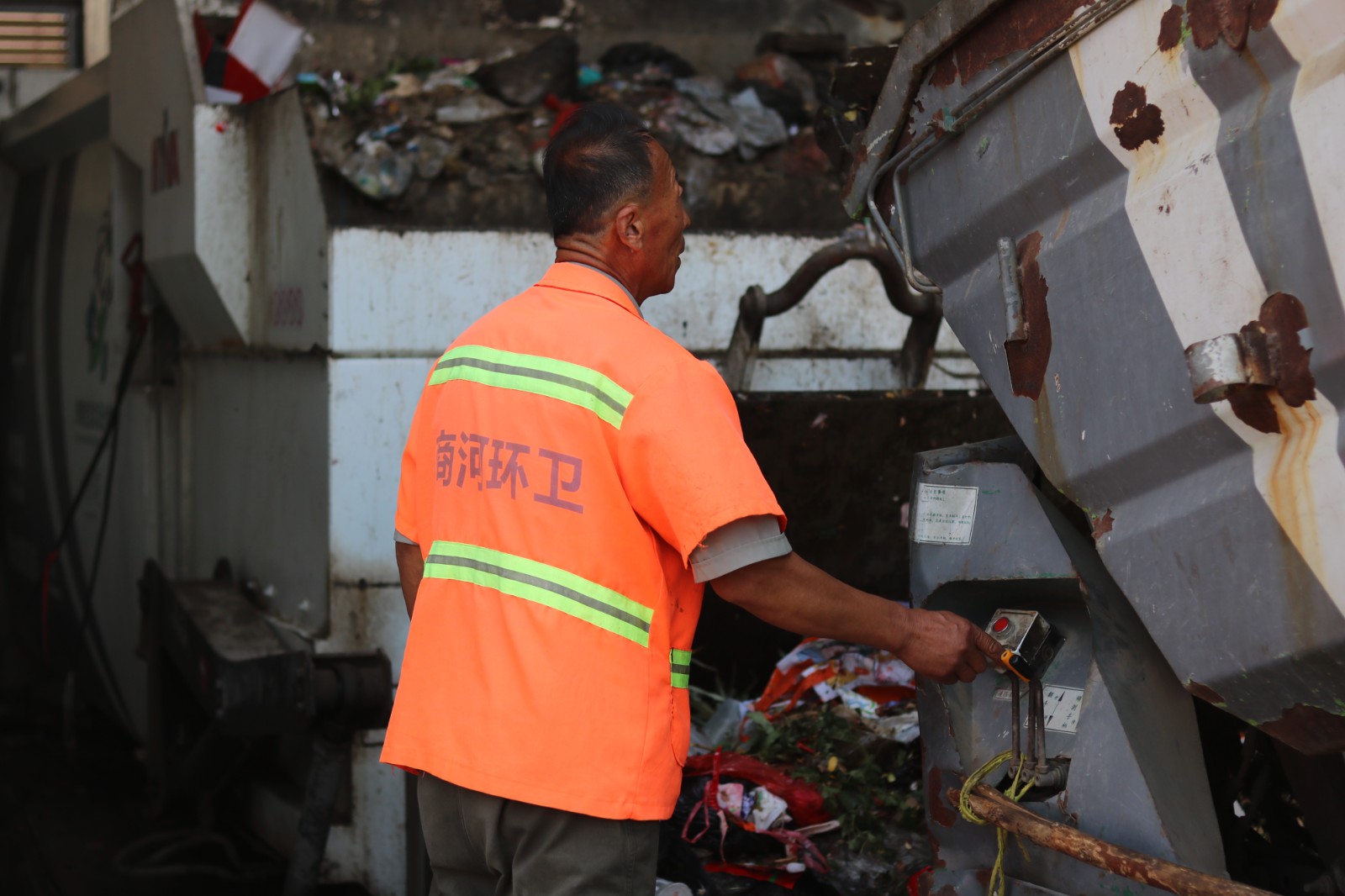 鏡頭二:垃圾堆旁的清運(yùn)工人