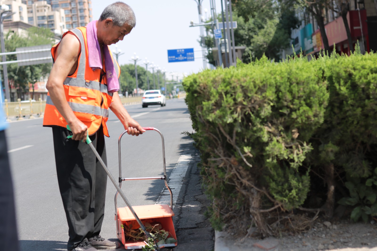 鏡頭一:烈日下的道路保潔人員