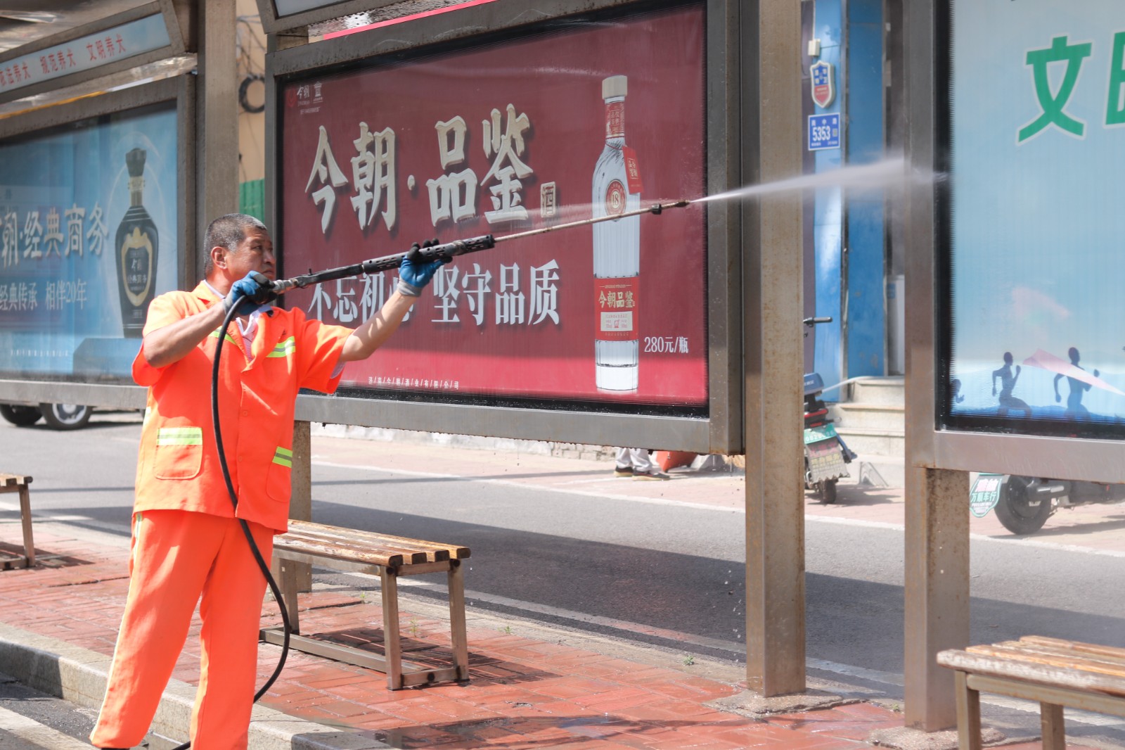 清晨五點(diǎn),第一縷陽光尚未穿透云層,環(huán)衛(wèi)工人們橘色的身影已在街道上躍動(dòng)。掃帚與地面摩擦的沙沙聲,奏響了城市清晨的樂章;仔細(xì)清掃一遍后,掃帚換成夾子,一手持夾子一手持撮子或手機(jī)袋——撿拾工作的標(biāo)配,開始巡回?fù)焓傲闵⒗?,隨著太陽逐漸升高,氣溫也在不斷攀升,臨近中午時(shí)分,室外溫度已經(jīng)超過了36℃,烈日炙烤下,空氣仿佛都被點(diǎn)燃。環(huán)衛(wèi)工人頂著熱浪,綠化帶里藏匿的塑料袋、樹穴里的紙屑、人行道縫隙中的煙頭......每一處衛(wèi)生死角都逃不過他們的眼睛。還有我們的城市家具保潔人員,他們正用高壓水車認(rèn)真地沖洗著路面、路沿石、路標(biāo)線、公交櫥窗,汗水順著臉頰滑進(jìn)衣領(lǐng),后背的衣衫濕了又干、干了又濕,結(jié)出白色的鹽漬,他們卻笑著說:“天熱垃圾容易發(fā)臭,多打掃幾遍,街道環(huán)境干凈了,大家出門心情都能好點(diǎn)?!?/p>
