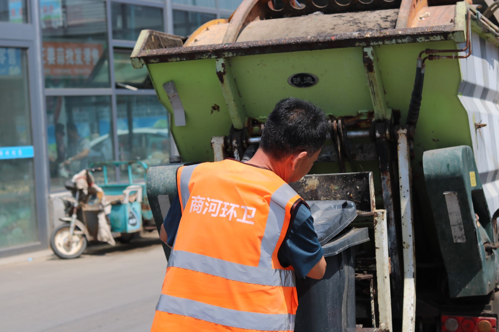 炎炎烈日下,這座城市被熱浪緊緊包裹。然而,垃圾清運(yùn)工人們卻在這樣惡劣的環(huán)境中堅(jiān)守崗位。他們穿梭于每一個(gè)居民小區(qū)的垃圾投放點(diǎn),戴著布滿污漬的手套,熟練地將垃圾桶里的垃圾倒入清運(yùn)車,每裝滿一車再運(yùn)往就近的垃圾中轉(zhuǎn)站進(jìn)行壓縮處理,裝車、卸車、清理落地垃圾,每一個(gè)動(dòng)作都干脆利落,刺鼻的氣味在高溫下愈發(fā)濃烈,伴隨著豆大的汗珠從額頭滑落,浸透衣衫??伤麄冾櫜簧线@些,只是專注地完成手頭的工作。
