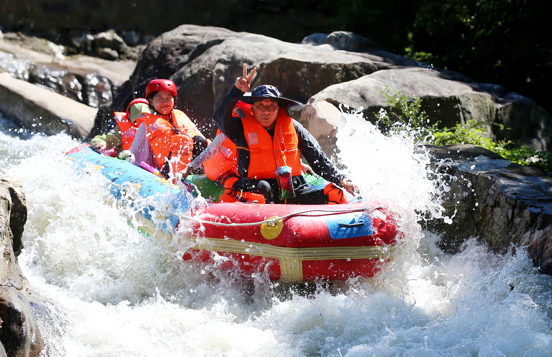 游客在新縣武占嶺漂流享受夏天