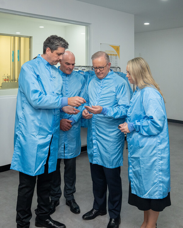 澳大利亞總理阿爾巴尼斯及未婚妻與科利耳公司代表在科利耳成都聽力產(chǎn)業(yè)中心合影