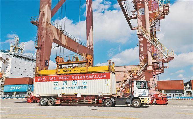 “‘絲路海運(yùn)’已深度參與全球供應(yīng)鏈產(chǎn)業(yè)鏈?!备=ńz路海運(yùn)運(yùn)營有限公司總經(jīng)理李南表示:“經(jīng)廈門港‘絲路海運(yùn)’航線出口的熱門商品,幾乎涵蓋了衣食住行等方方面面,從常見的服裝鞋帽,到近年來熱銷的電線電纜及新能源產(chǎn)品,越來越多‘中國制造’從這里走向世界?!?/p>