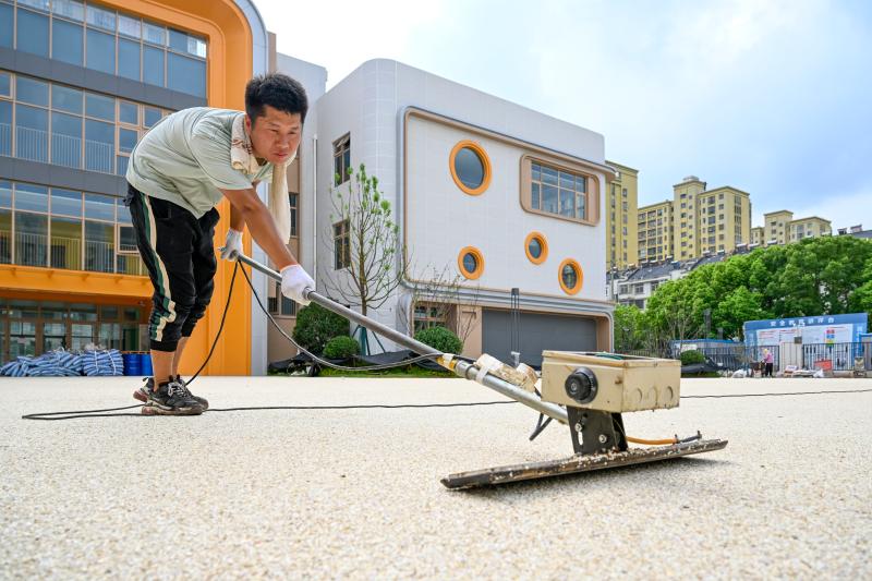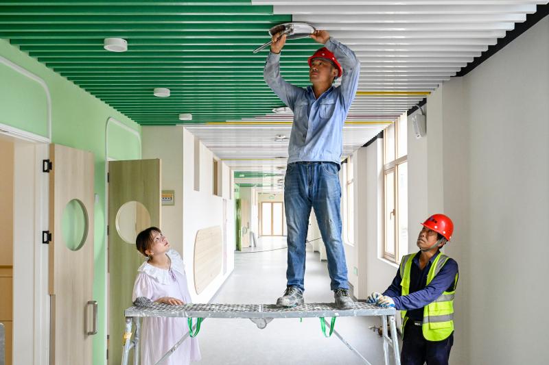 2025年8月8日,在安徽省合肥廬陽經(jīng)濟開發(fā)區(qū)轄區(qū)合肥市宿州路幼兒園教育集團云錦分園,工人正在對校園室內(nèi)外進行美化亮化。據(jù)了解,合肥市宿州路幼兒園教育集團云錦分園總建筑面積6339.65平方米,包含15個教學(xué)班級,5個功能教室,可容納450名適齡兒童學(xué)前教育需求,今年9月1日正式開園。(廬陽區(qū)人民政府)