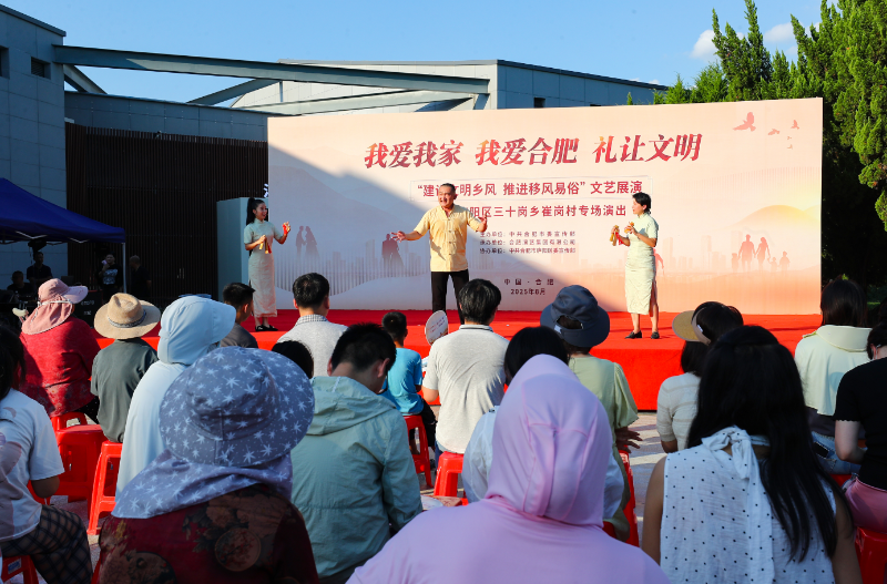 8月19日,由合肥市委宣傳部主辦、合肥市演藝集團(tuán)承辦、廬陽區(qū)委宣傳部協(xié)辦的“我愛我家,我愛合肥,禮讓文明——建設(shè)文明鄉(xiāng)風(fēng)推進(jìn)移風(fēng)易俗”主題文藝展演走進(jìn)三十崗鄉(xiāng)崔崗村,為村民帶來一場浸潤人心的文化盛宴,將文明新風(fēng)送進(jìn)和美鄉(xiāng)村。