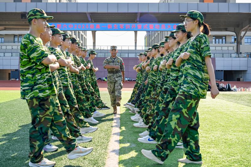 2025年8月22日,在合肥廬陽經(jīng)濟開發(fā)區(qū)合肥六中菱湖校區(qū),高一新生正在參加軍訓(xùn)。新學(xué)期即將到來,合肥六中組織開展為期一周的軍體訓(xùn)練,旨在增強學(xué)生體質(zhì),磨煉新生意志,樹立組織紀(jì)律觀念,培養(yǎng)艱苦奮斗的作風(fēng)。(廬陽區(qū)人民政府)