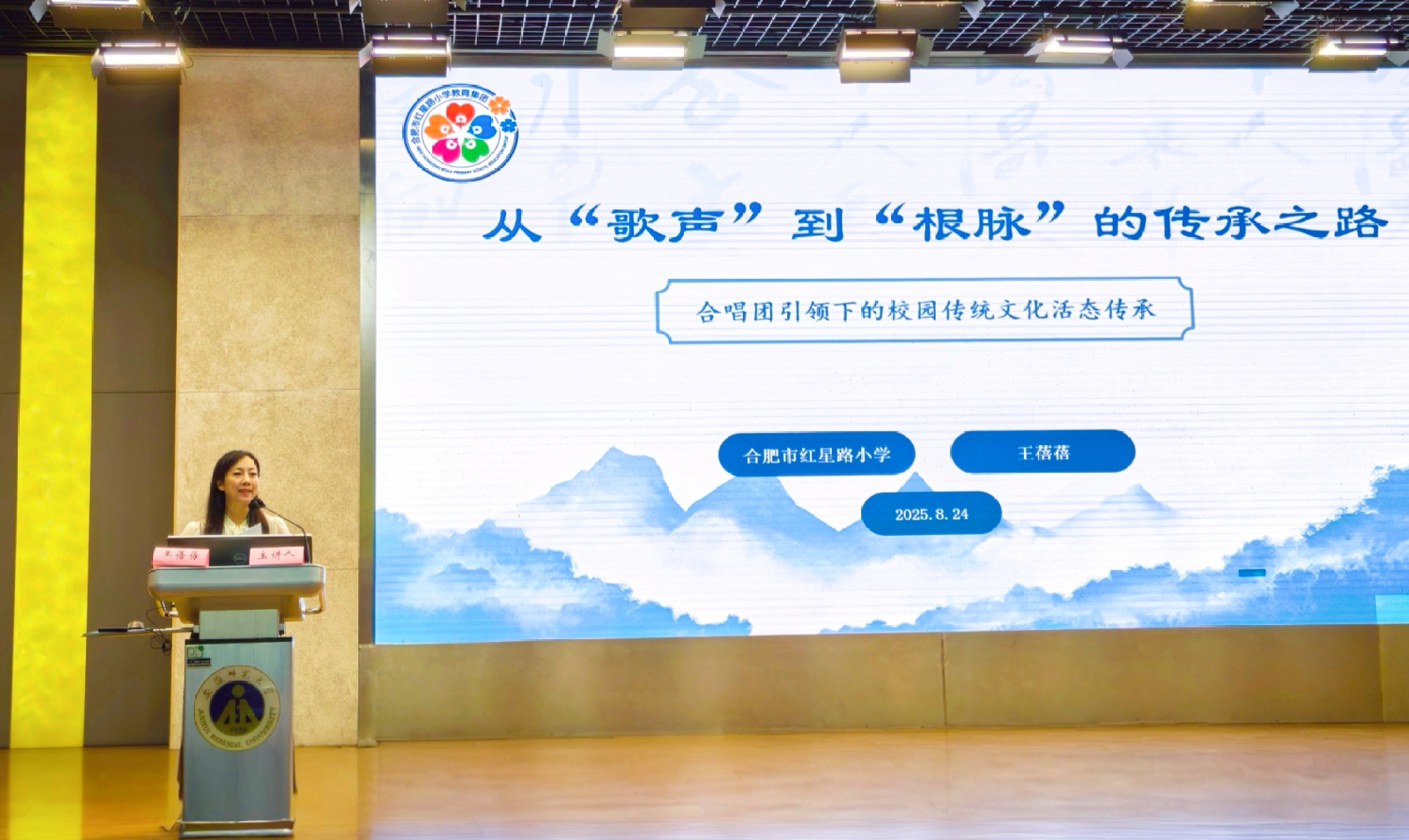 活動(dòng)期間,合肥市紅星路小學(xué)音樂教師、合肥市王蓓蓓名師工作室主持人王蓓蓓,受邀代表廬陽區(qū)在安徽省中小學(xué)傳統(tǒng)文化傳承成果專項(xiàng)展演分享活動(dòng)中作經(jīng)驗(yàn)交流。王蓓蓓以《春滿巢湖》的創(chuàng)作與排演為例,深入闡述合唱曲目創(chuàng)新的關(guān)鍵路徑——既要注重傳統(tǒng)旋律的“適唱化”改編,讓經(jīng)典曲調(diào)更貼合中小學(xué)生的演唱特點(diǎn);也要推動(dòng)合唱與教學(xué)深度融合,通過多元形式實(shí)現(xiàn)文化內(nèi)涵“可視化”。王蓓蓓強(qiáng)調(diào),傳統(tǒng)文化傳承的核心在于引導(dǎo)學(xué)生從“知道”到“理解”再到“內(nèi)化”,需將“教”的專業(yè)引導(dǎo)與“悟”的親身實(shí)踐相結(jié)合,把抽象的文化內(nèi)涵轉(zhuǎn)化為可聽、可感、可參與的體驗(yàn)過程,讓學(xué)生在歌聲中觸摸文化根脈,真正打造“合唱+傳統(tǒng)文化”的特色傳承模式。
