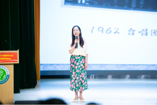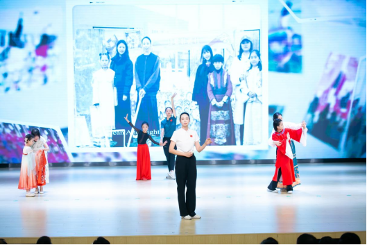 在主題報(bào)告環(huán)節(jié),合肥市紅星路小學(xué)藝體教研組全體教師登臺(tái),分享了紅星教育人守正創(chuàng)新、以五育融合托舉每一個(gè)孩子無(wú)限可能的教育故事。王泉作為主講人,以個(gè)人成長(zhǎng)歷程為線索,娓娓道來(lái)在紅星的歲月沉淀,以及在藝體項(xiàng)目傳承接力中所體悟的教育真諦。茅國(guó)發(fā)深情講述了紅星蛟龍游泳隊(duì)創(chuàng)始人高老師不畏艱難、白手起家的感人經(jīng)歷,引得在場(chǎng)教師熱淚盈眶。王蓓蓓在小百靈合唱團(tuán)團(tuán)歌的悠揚(yáng)旋律中,回顧了三代指揮教師接力傳承、帶領(lǐng)合唱團(tuán)從合肥走向全國(guó)、飛向世界的輝煌歷程。最后,紅星藝體教研組全體教師齊聲朗誦,誓言鏗鏘,抒發(fā)了在建設(shè)教育強(qiáng)國(guó)的征程中傳承精神、銳意創(chuàng)新、砥礪前行的堅(jiān)定決心——托舉每一個(gè)紅星學(xué)子做最好的自己,讓每個(gè)孩子都成為閃閃發(fā)光的個(gè)體。