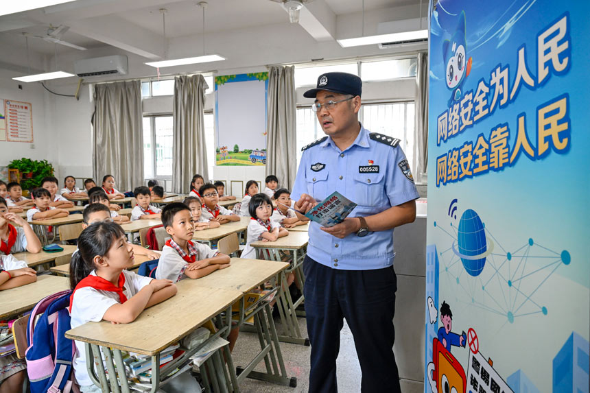 “同學們,有誰知道網(wǎng)絡危害有哪些?”隨著網(wǎng)安大隊民警拋出問題,現(xiàn)場瞬間沸騰起來。孩子們高高舉起雙手,眼神中閃爍著求知的光芒,爭先恐后地回答:“沉迷網(wǎng)絡對視力不好,影響學習……”“網(wǎng)絡上有不良信息,會誤導我們……”那踴躍發(fā)言的場景,仿佛是一場激烈的網(wǎng)絡安全知識競賽。