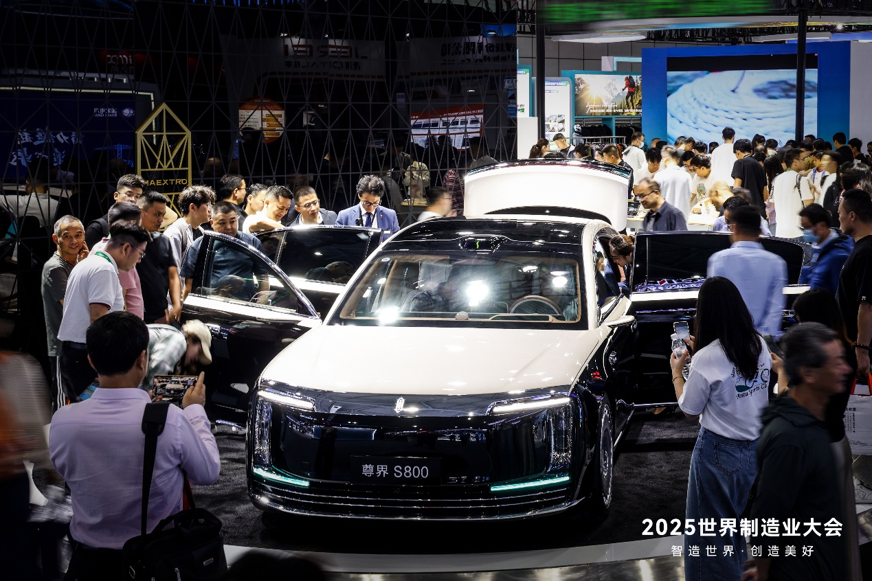 大會(huì)外展區(qū)域,尊界S800驚艷亮相排面拉滿,未來(lái)感十足的設(shè)計(jì)語(yǔ)言與與生俱來(lái)的豪華氣場(chǎng)相得益彰,瞬間成為全場(chǎng)視覺核心。流線型車身勾勒出優(yōu)雅身姿,星輝點(diǎn)綴的細(xì)節(jié)彰顯匠心,每一處設(shè)計(jì)都詮釋著“超豪華”的定義。