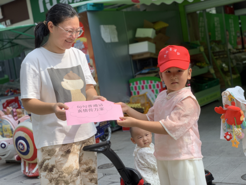 在老師的帶領(lǐng)下,小朋友們手持推普宣傳單,禮貌地向社區(qū)居民介紹推廣普通話的重要意義。稚嫩的聲音、認(rèn)真的態(tài)度,成為社區(qū)里一道獨特的推普風(fēng)景線。