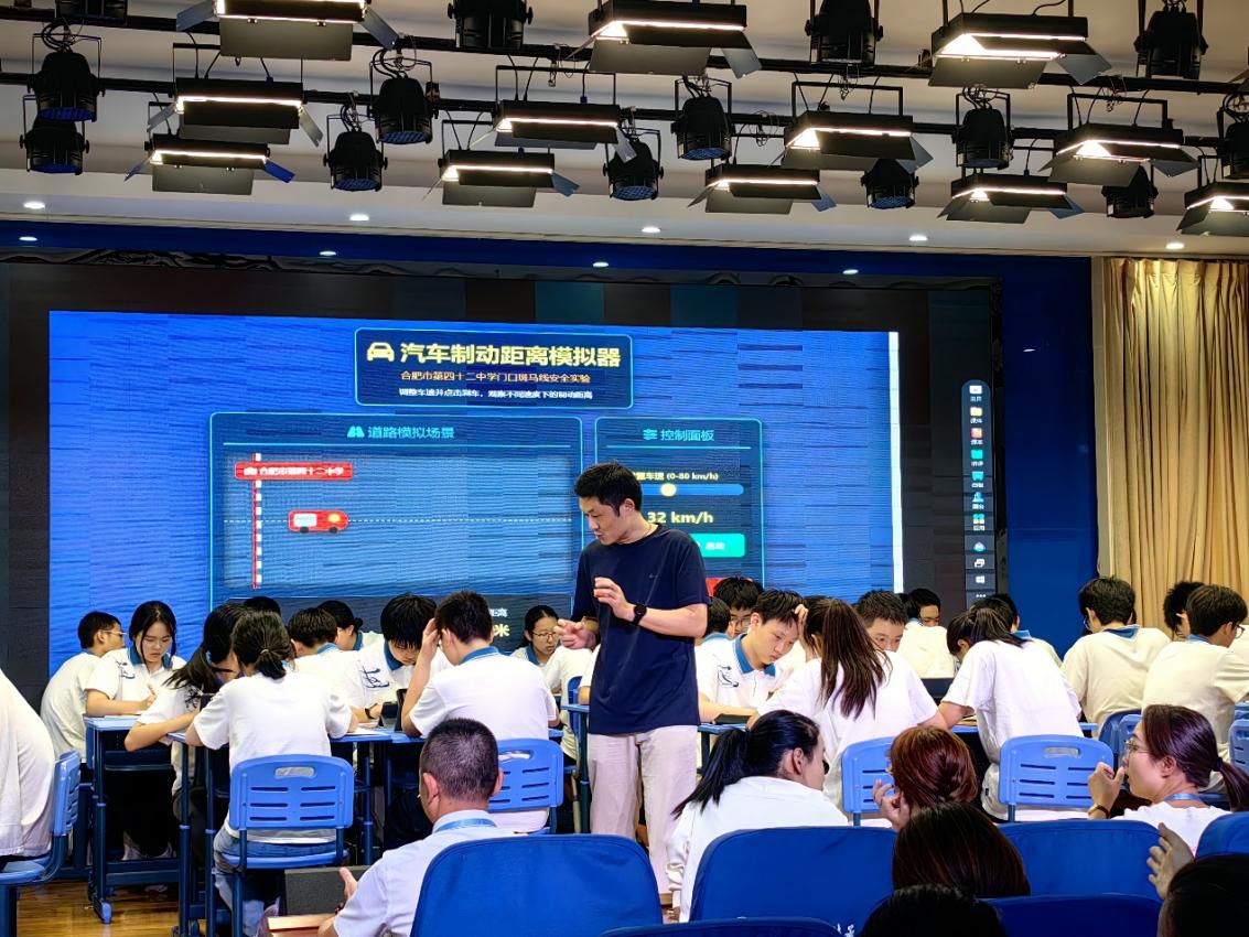 該校數(shù)學教師石磊,石磊名師工作室領銜人,開展展示課,聚焦“二次函數(shù)的應用:汽車制動距離”,依托智慧平板構建互動實驗場景,帶領學生通過數(shù)據(jù)探究,完成生活實際問題的解決與驗證。
