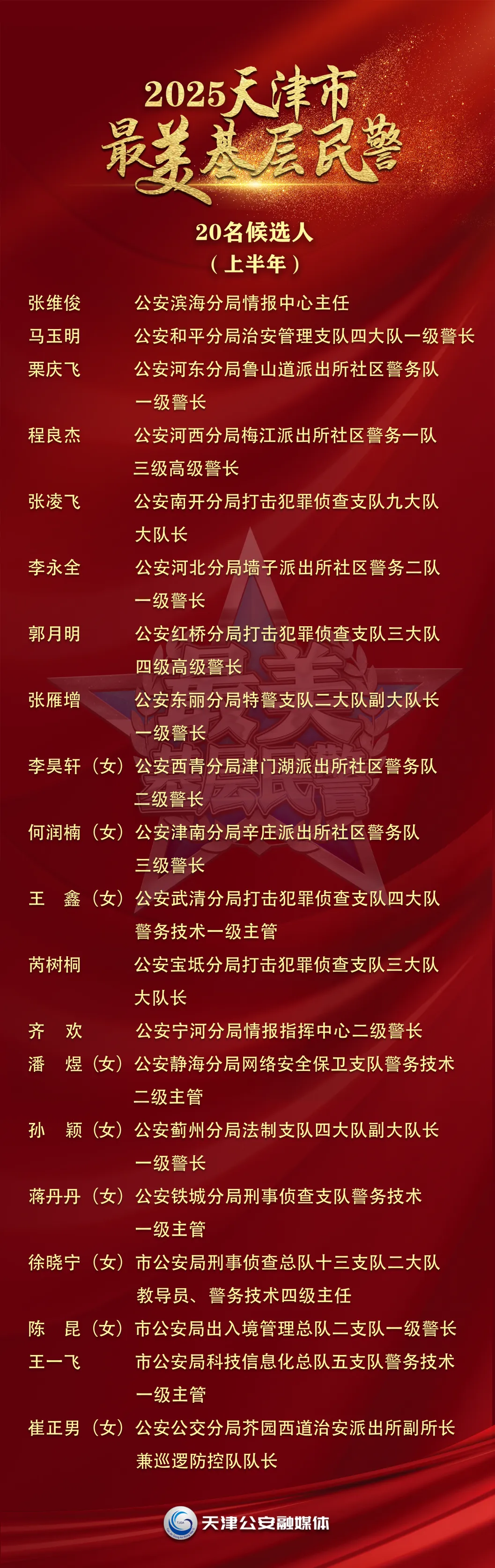 陽光下的守護丨2025天津市“最美基層民警”年終總評候選人(上半年)揭曉!