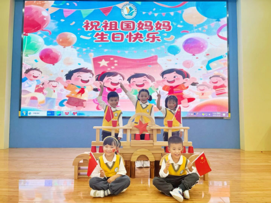 四里河畔園的孩子們手持鮮艷的五星紅旗,在鏡頭前留下與國旗同框的珍貴合影,稚嫩臉龐上的燦爛笑容,滿是對(duì)祖國最真摯的熱愛與祝福。幼兒還化身“小小建筑師”,他們用積木、紙杯、五星紅旗等材料合作搭建,莊嚴(yán)的天安門盡顯氣派,在孩子們的巧手下化為生動(dòng)的立體作品,讓心中對(duì)祖國的美好印象愈發(fā)清晰。大班幼兒在教師的引導(dǎo)下,以畫寄情,將對(duì)祖國的無限憧憬、濃濃的愛國之情融入畫作。這些充滿童真的作品都承載著孩子們對(duì)祖國生日的誠摯祝愿。