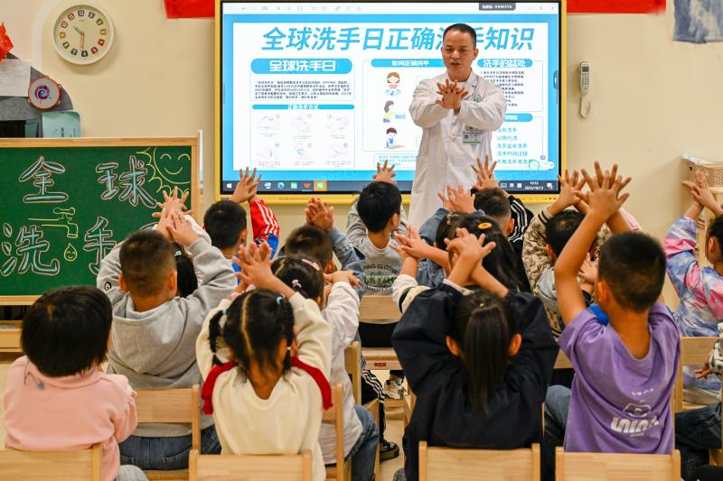 2025年10月13日,在安徽省合肥市廬陽區(qū)林店街道宿州路幼兒園云錦分園,小朋友們正在醫(yī)護人員的指導(dǎo)下學(xué)習(xí)如何正確洗手。10月15日是“全球洗手日”,該園聯(lián)合社區(qū)林店衛(wèi)生服務(wù)中心開展“守護雙手清潔,筑牢健康防線”主題活動,通過多種形式向幼兒講解個人衛(wèi)生行為對健康的影響,引導(dǎo)孩子們加強衛(wèi)生意識、防止疾病傳染。(廬陽區(qū)人民政府)