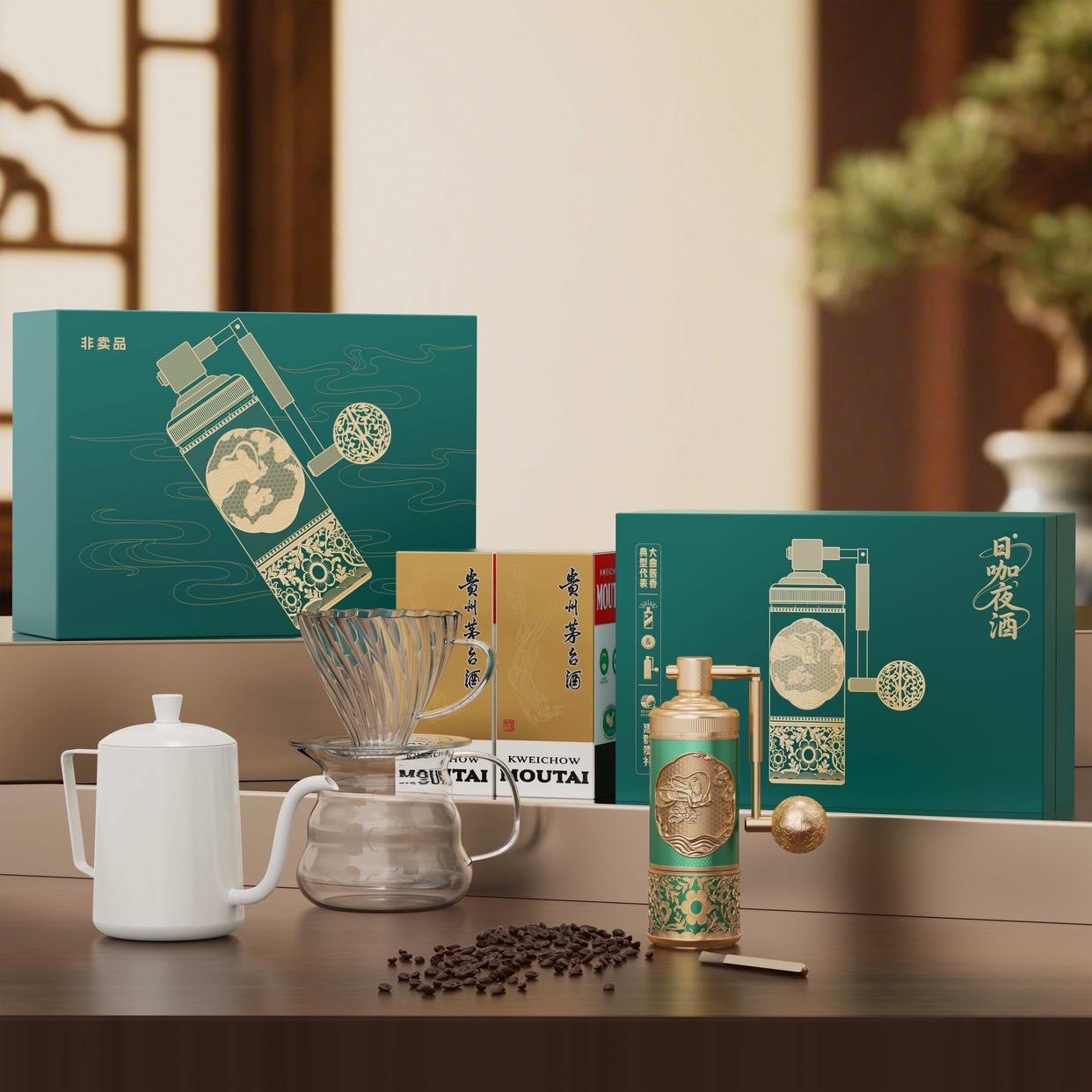 當(dāng)晨光穿透窗簾,金屬與咖啡豆的碰撞聲喚醒沉睡的感官;當(dāng)夜幕低垂,貴州茅臺(tái)酒的醬香撫平那都市的喧囂??Х扰c酒的日夜交疊,隱喻著現(xiàn)代人剛?cè)岵?jì)的生存哲學(xué)。貴州茅臺(tái)酒“日咖夜酒”禮盒,承載晝與夜的儀式感;交融東方與西方的文化密碼。