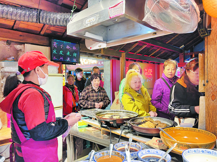 夜幕降臨,罍街的煙火氣為旅途增添了別樣滋味。安徽各地特色小吃香氣彌漫,三河米餃、黃山燒餅、淮南牛肉湯等美食琳瑯滿目。蘇州戲迷們穿梭在燈火通明的街巷中,或駐足品嘗地道皖味,或與當?shù)財傊饔H切攀談,在味蕾的滿足中感受著合肥的市井溫情與煙火人間。