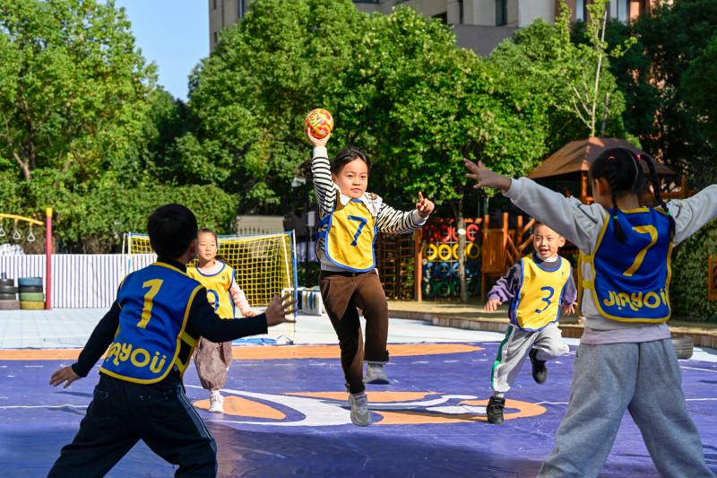 2025年10月23日,在安徽省合肥市廬陽區(qū)林店街道雙崗幼教集團(tuán)逍然居分園,小朋友們正在進(jìn)行手球?qū)贡荣?。近年來,該幼兒園踐行廬陽區(qū)“YUE動廬陽 歡樂校園”五大行動,積極鍛煉幼兒強(qiáng)健體格,開發(fā)以手球?yàn)橹黝}的運(yùn)動特色課程,不僅讓小朋友學(xué)有所樂、學(xué)有所長,同時也推動少兒科學(xué)運(yùn)動,健康成長。(廬陽區(qū)人民政府)