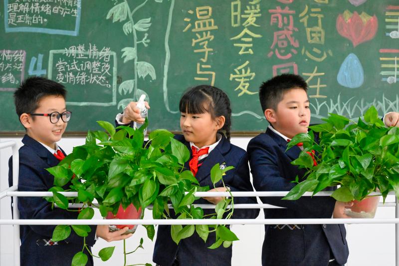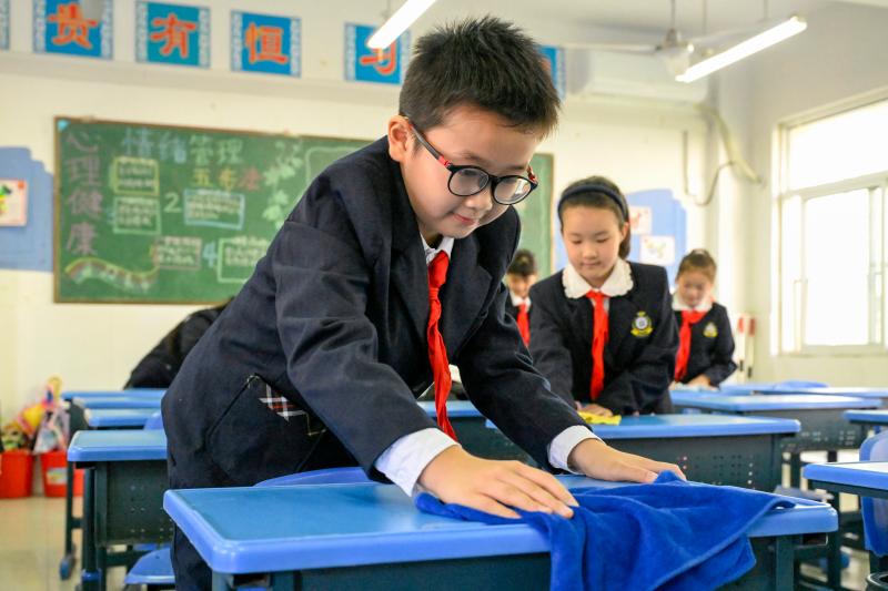 10月22日,在廬陽區(qū)林店街道南門小學(xué)恒盛皇家花園校區(qū),小學(xué)生正在裝扮教室,打掃校園衛(wèi)生。今年以來,該校通過紅領(lǐng)巾志愿服務(wù)積分形式,鼓勵(lì)學(xué)生積極參與到班級服務(wù)中來,旨在引導(dǎo)孩子們學(xué)會奉獻(xiàn)的意義和責(zé)任擔(dān)當(dāng)?shù)膬?nèi)涵,為校園的和諧與美好貢獻(xiàn)自己的力量。(廬陽區(qū)人民政府)