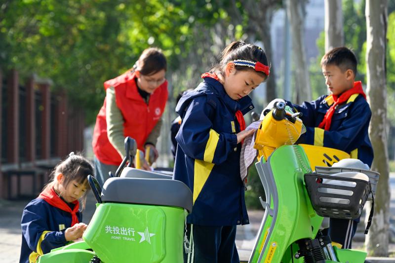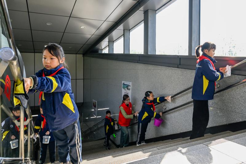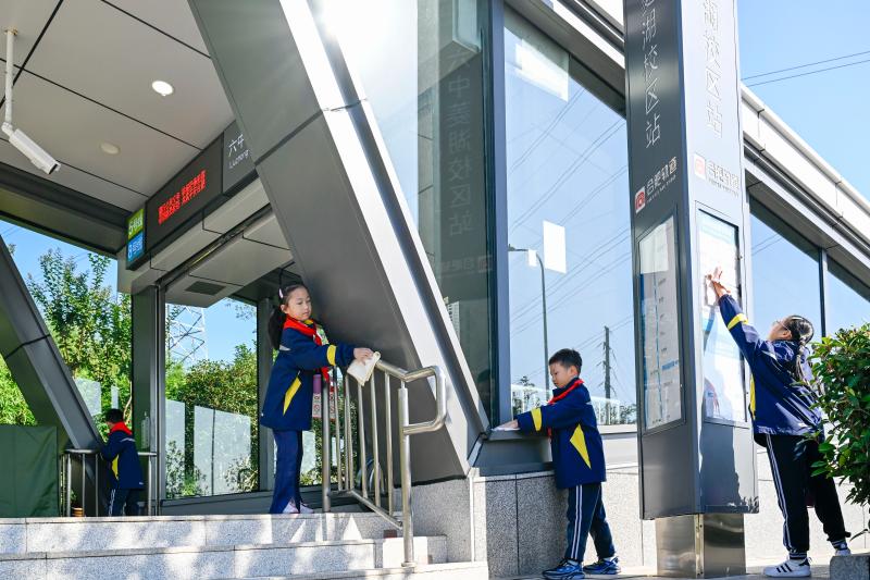 10月23日,在安徽省合肥廬陽經濟開發(fā)區(qū)地鐵五號線六中菱湖校區(qū),來自安慶路第三小學靈溪校區(qū)的小學生正在參加社會公共衛(wèi)生服務活動。近日,合肥市出臺《合肥市促進中小學生健康快樂成長若干舉措》,通過設立德育與情感教育、學業(yè)減負、勞動教育、體育健康等16項內容,強化中小學生“德智體美勞”全面發(fā)展。(廬陽區(qū)人民政府)