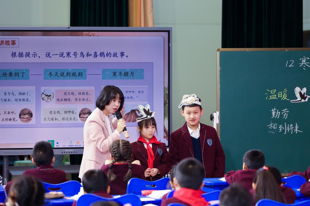 10月25日上午,研討活動(dòng)按低、中、高三個(gè)學(xué)段同步開設(shè)單元整體教學(xué)課例展示。其中低年級(jí)組,廣東教研團(tuán)隊(duì)以“品故事之趣,享思考之樂”為主題,生動(dòng)呈現(xiàn)二年級(jí)上冊(cè)第五單元《坐井觀天》《寒號(hào)鳥》兩篇課文及口語交際課《商量》的整合教學(xué)。