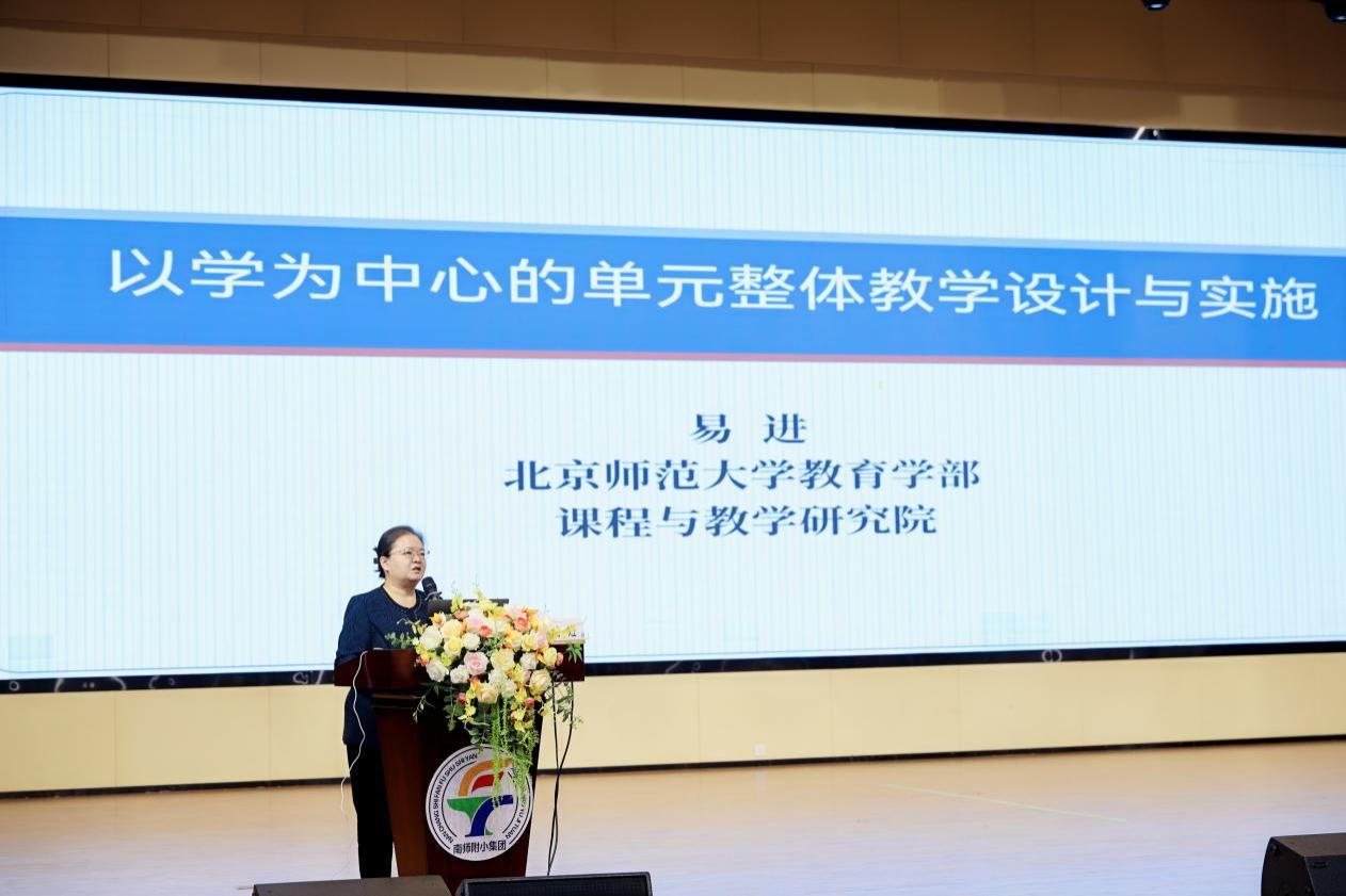 隨后,北京師范大學(xué)易進(jìn)教授作專題講座,從“單元整體教學(xué)的內(nèi)涵厘清”到“基于學(xué)習(xí)內(nèi)容類型的單元設(shè)計(jì)方法”,系統(tǒng)構(gòu)建理論框架,為實(shí)踐提供支撐。易進(jìn)教授特別強(qiáng)調(diào),單元整體教學(xué)的終極目標(biāo)是引導(dǎo)學(xué)生實(shí)現(xiàn)系統(tǒng)學(xué)習(xí)與知識(shí)結(jié)構(gòu)化,最終達(dá)成“教—學(xué)—評(píng)”一致性,為語文育人提質(zhì)增效。