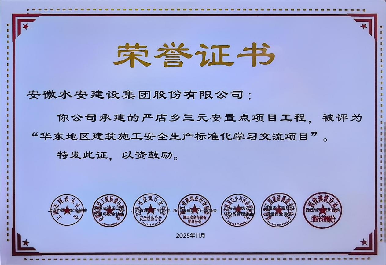 近日,由肥西縣重點工程中心負責(zé)代建的嚴店三元保障房項目榮獲“華東地區(qū)建筑施工安全生產(chǎn)標準化學(xué)習(xí)交流項目”。該獎項由華東地區(qū)各省、市建筑安全協(xié)會按照控制數(shù)量、優(yōu)中選優(yōu)的原則,組織推薦評選,經(jīng)專家組評審,選取在現(xiàn)場安全管理和安全設(shè)施標準化方面有創(chuàng)新、有特色、有推廣意義的建筑工程項目。