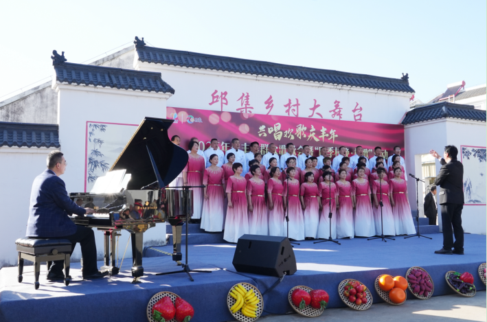 冬日暖陽(yáng)灑落在村院農(nóng)房,錯(cuò)落光影間,“邱集鄉(xiāng)村大舞臺(tái)”顯得熠熠生輝。隨著開(kāi)場(chǎng)舞《五谷豐登》精彩上演,群眾表演者們身著喜慶的服裝,動(dòng)作舒展靈動(dòng),將豐收的歡悅傳遞給在場(chǎng)每一位觀眾,正式拉開(kāi)了歌詠會(huì)的序幕。