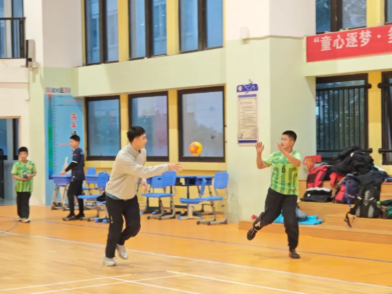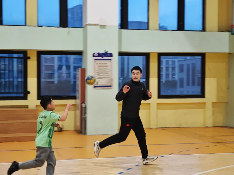 圖 毛饒翔、饒?jiān)磁c永紅路小學(xué)手球隊(duì)的學(xué)弟學(xué)妹們并肩訓(xùn)練、同臺(tái)競(jìng)技