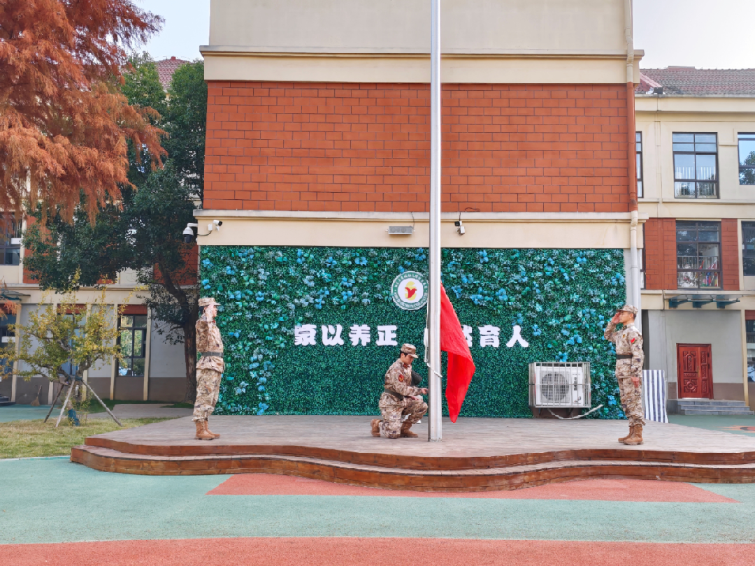 上午9時,活動在激昂的國歌聲中拉開帷幕。安樂社區(qū)退伍軍人程大偉身著整潔服裝,以挺拔的軍姿擔任護旗手,與武裝部同志一同莊嚴升起五星紅旗。全體師生凝視國旗徐徐上升,孩子們用稚嫩而響亮的嗓音跟唱國歌。
