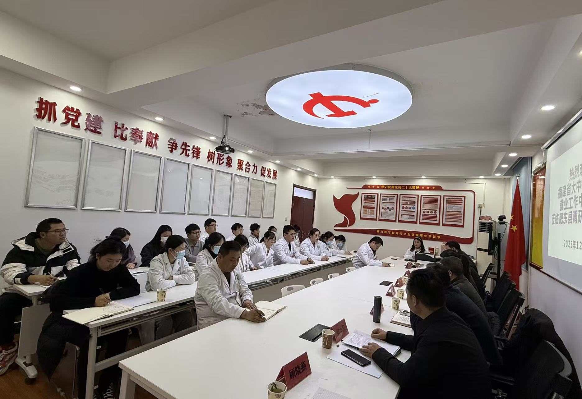 實(shí)地考察后,調(diào)研組與肥東縣“三支一扶”人員親切座談,來自支醫(yī)、支農(nóng)、鄉(xiāng)村振興等不同崗位的“三支一扶”人員代表結(jié)合自身服務(wù)經(jīng)歷,講述扎根基層一線的成長故事,暢談在醫(yī)療服務(wù)、農(nóng)技推廣、鄉(xiāng)村發(fā)展等工作中的實(shí)踐收獲,踴躍分享基層工作心得與成長感悟,生動展現(xiàn)了肥東“三支一扶”人員扎根一線、服務(wù)群眾的責(zé)任擔(dān)當(dāng)。隨后,肥東縣人社局“三支一扶”工作辦公室負(fù)責(zé)人向做專項(xiàng)工作匯報,從目標(biāo)任務(wù)完成情況、配套政策優(yōu)化落實(shí)、管理服務(wù)精準(zhǔn)高效等方面,全面介紹肥東縣“三支一扶”工作的開展情況,重點(diǎn)介紹在人才輸送、基層賦能等方面取得的階段性成果。
