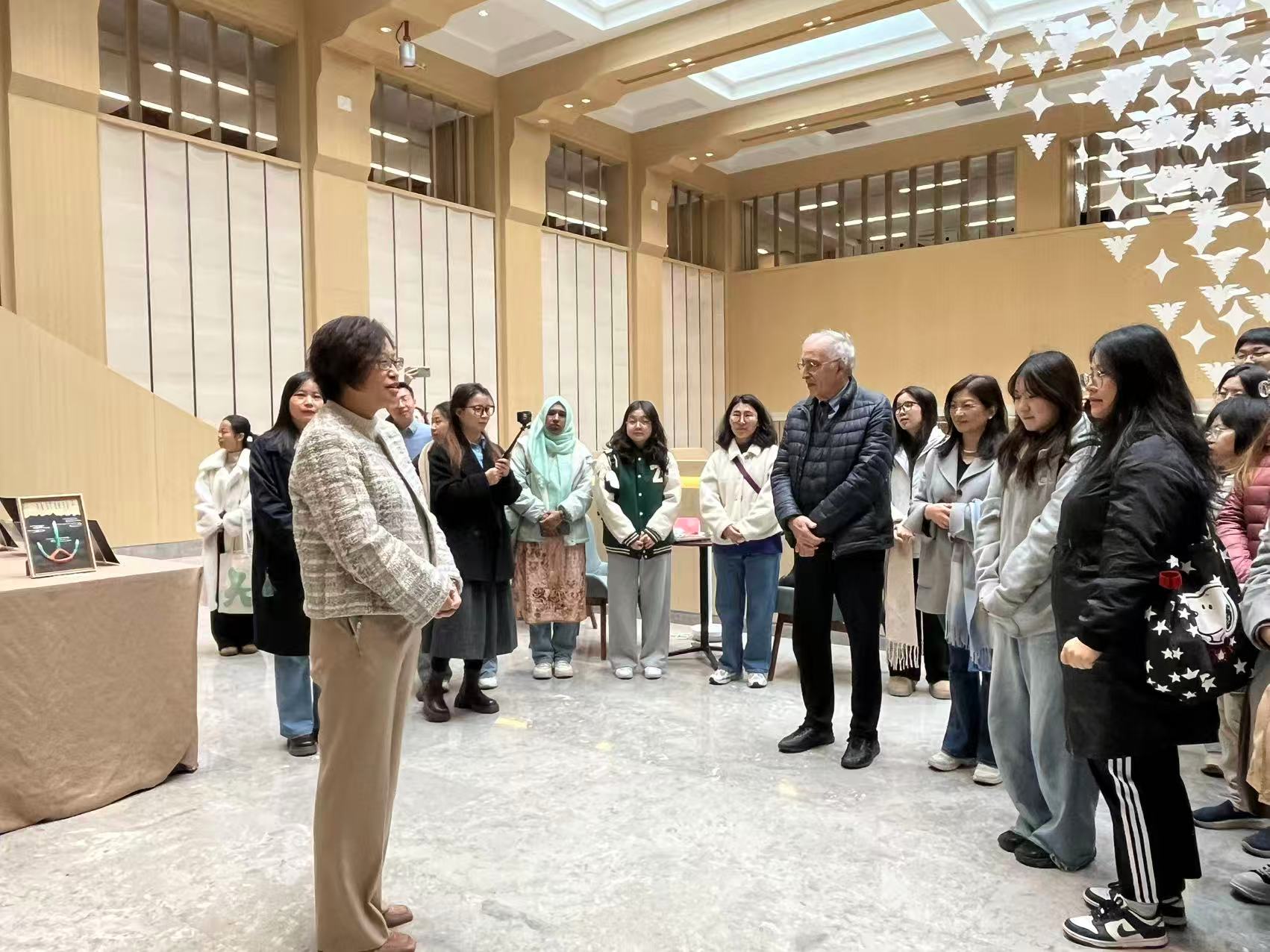 浙江大學(xué)圖書館王苑書記在開幕式致辭中,充分肯定此次展覽對(duì)中國(guó)文化傳播的重要意義,她表示圖書館作為校園文化的重要傳播平臺(tái),非常樂意為此類課程相關(guān)展覽提供力所能及的支持,充分發(fā)揮圖書館作為校園文化交流平臺(tái)的重要作用。此次展覽匯集了中國(guó)和多國(guó)籍留學(xué)生關(guān)于漢字的創(chuàng)作作品,體現(xiàn)了多元文化在浙大的交融,是一場(chǎng)漢字的跨文化對(duì)話。圖書館將持續(xù)支持相關(guān)的文化展示和推廣活動(dòng),助力漢字文化在校園內(nèi)外,乃至更大范圍的國(guó)際傳播。