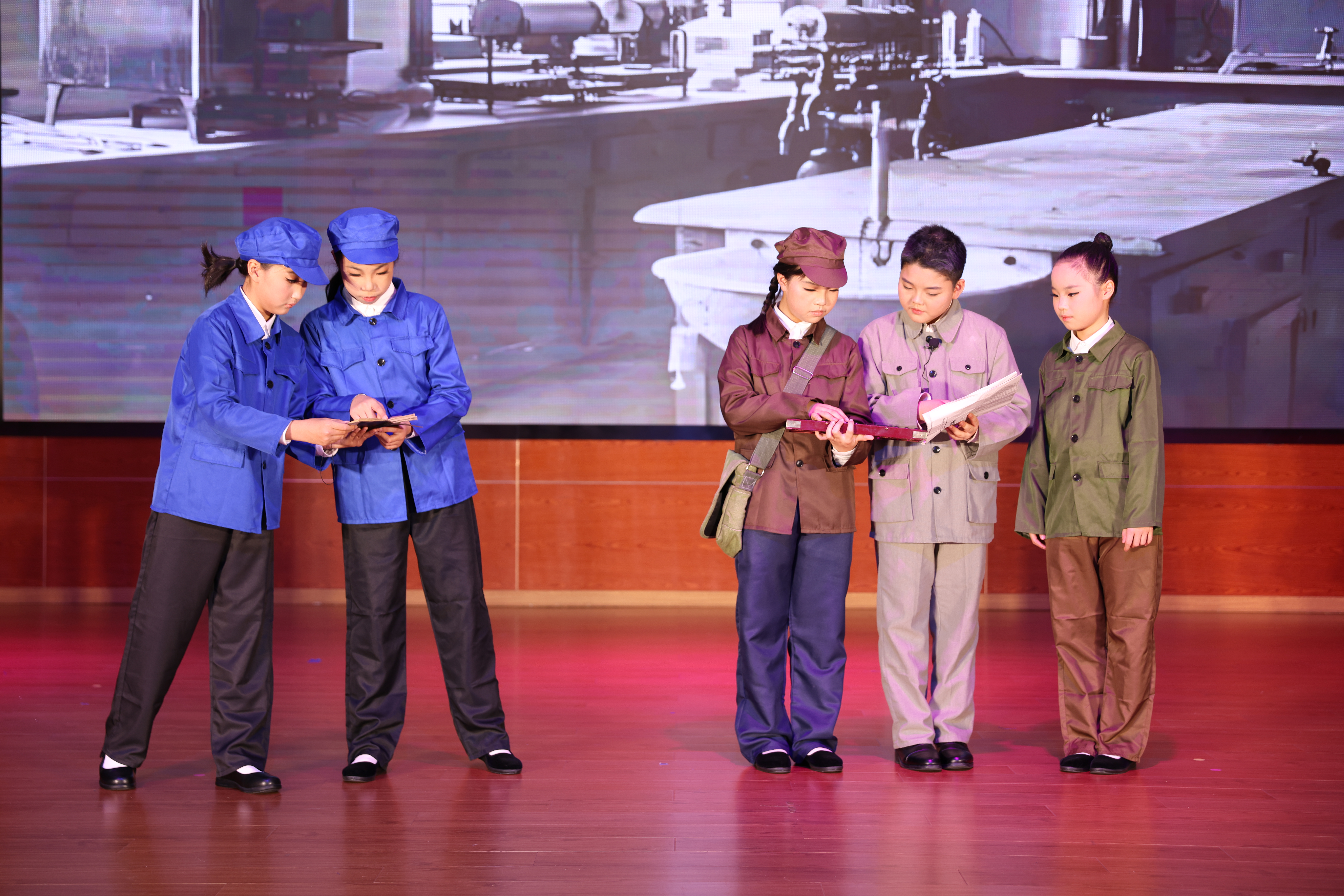 團(tuán)隊(duì)特意設(shè)計(jì)"現(xiàn)代科技館穿越"的結(jié)構(gòu),讓當(dāng)代少年兒童與老一輩科學(xué)家實(shí)現(xiàn)跨時(shí)空對(duì)話,用兒童視角詮釋"隱姓埋名鑄重器,一生許國(guó)赤子心"的精學(xué)生們以真摯的情感、生動(dòng)的表演,將鄧稼先先生胸懷家國(guó)、淡泊名利的崇高品格與艱苦奮斗的科研精神展現(xiàn)得淋漓盡致,讓觀眾沉浸式感受科學(xué)家的赤子情懷。