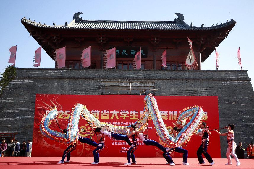 11月29日,2025年安徽省大學生舞龍舞獅錦標賽在肥東撮街精彩上演。來自全省20所高校的403名大學生運動員齊聚一堂,同臺競技,共展龍獅風采,傳承中華優(yōu)秀傳統(tǒng)文化。