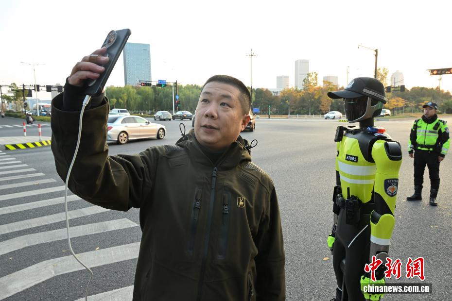 12月3日,市民和AI交通管理機(jī)器人自拍合影。近日,浙江杭州交警推出AI交通管理機(jī)器人“杭行1號(hào)”,該機(jī)器人可根據(jù)交通信號(hào)燈做出標(biāo)準(zhǔn)指揮動(dòng)作,并依托視覺識(shí)別分析技術(shù)及時(shí)發(fā)現(xiàn)非機(jī)動(dòng)車違法行為,進(jìn)行勸導(dǎo),以科技賦能交通管理。