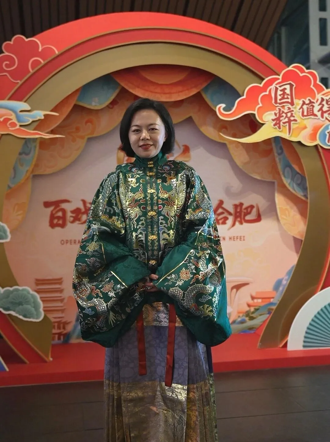 觀眾打卡昆曲《重逢〈牡丹亭〉》合肥演出現(xiàn)場(chǎng)。