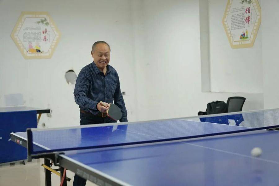 南七街道學(xué)府名都小區(qū)內(nèi),61歲的鄒爺爺正陪著10歲的孫子在室內(nèi)乒乓球臺(tái)上切磋球技?!白詮男卵b了這些健身器材后,我們下樓就可以鍛煉?!?/p>