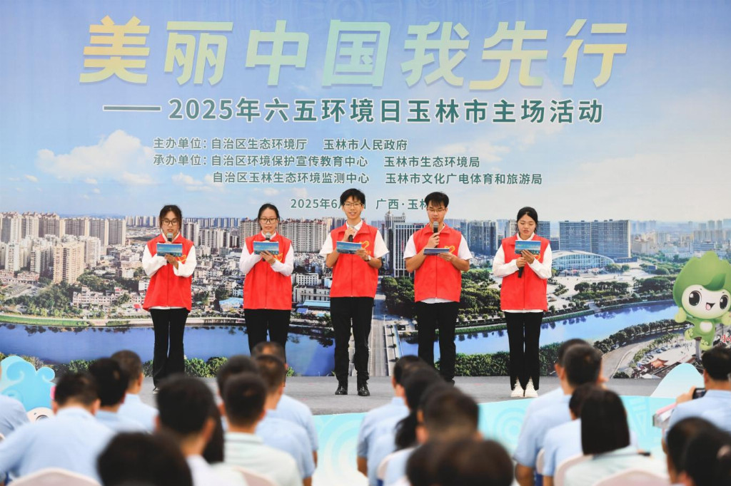 志愿者在六五環(huán)境日玉林主場活動作環(huán)保倡議